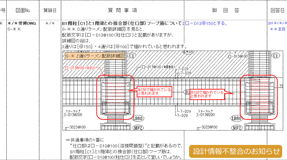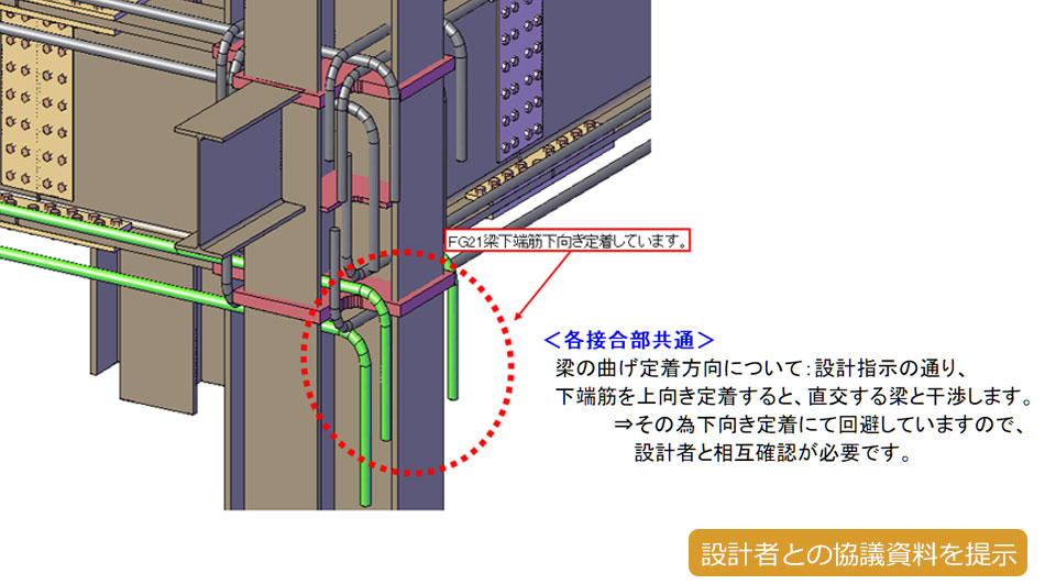 まず構造設計図に情報漏れや不整合が無いかを徹底的にみます。問題があればお客様へお知らせし、不足情報を随時ご提供いただきます。